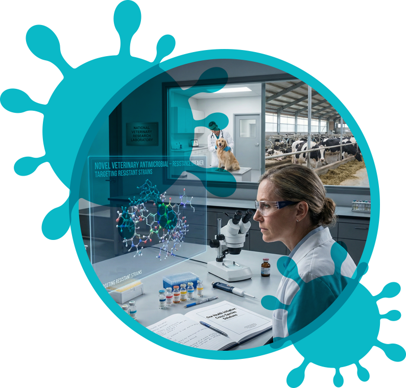Ez a központosított erőforrás- és tudásmegosztás lehetővé teszi a gyors információcserét és az innovatív megoldások gyorsabb alkalmazását. Az együttműködésben számos szakterület képviselői dolgoznak együtt, többek között állatorvosok, humán orvosok, biológusok, mikrobiológusok, immunológusok, informatikusok és mérnökök. A Nemzeti Laboratórium munkájának középpontjában az AMR elleni küzdelem áll, ami a predikciók szerint 2050-re vezető halálokká válhat az emberek körében. A labor országos felméréseket végez több mint 40 baromfi- és sertéstelepen, ahol aggasztóan magas, 50–60% körüli fluorokinolon-rezisztenciát mutattak ki baromfiállományokban. Az AMR kockázatának megelőzésére a labor gépi tanulási algoritmusokat és SHAP-elemzést alkalmaz, összekapcsolva az antibiotikum-fogyasztási, termelési és környezeti tényezőkre (pl. hőmérséklet, csapadék) vonatkozó adatokat. Ezzel a komplex megközelítéssel előrejelzéseket készítenek, és proaktív döntéstámogatást (dashboardok) kínálnak a gazdálkodóknak. Az adatokat a GDPR-nak megfelelően anonimizálják a gazdálkodók biztonsága érdekében.
